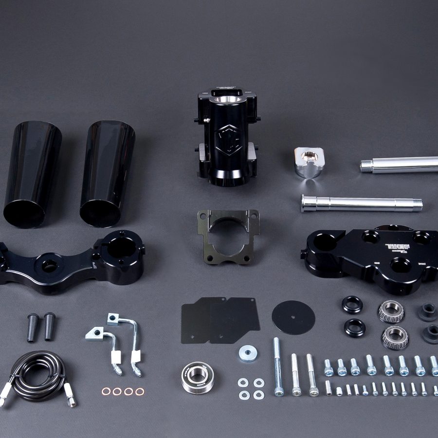 Steel Koreレーキキットは、ストックツーリングバイクと同じ安全基準を維持しながら、理想的なレーキ角とフロントフェンダーと下部トリプルツリーとの間の適切なクリアランスの両方を提供する3方向ボルトオンレーキキットです。最先端のデザインと最新の素材の組み合わせにより、市場のあらゆるレーキキットの中で最高の耐久性と最高のフレームアライメントが保証され、安全でスタイリッシュな乗り心地を自信を持って期待することができます。