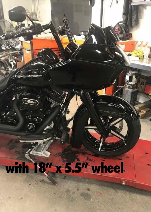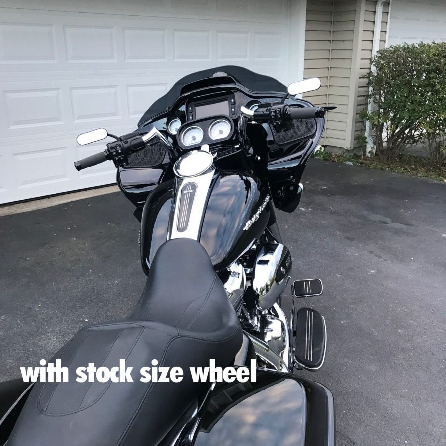 ストックフェアリングマウントが現在使用されている場合はトリプルツリーを変更しただけで、より大きなホイールセットアップでも動作します。