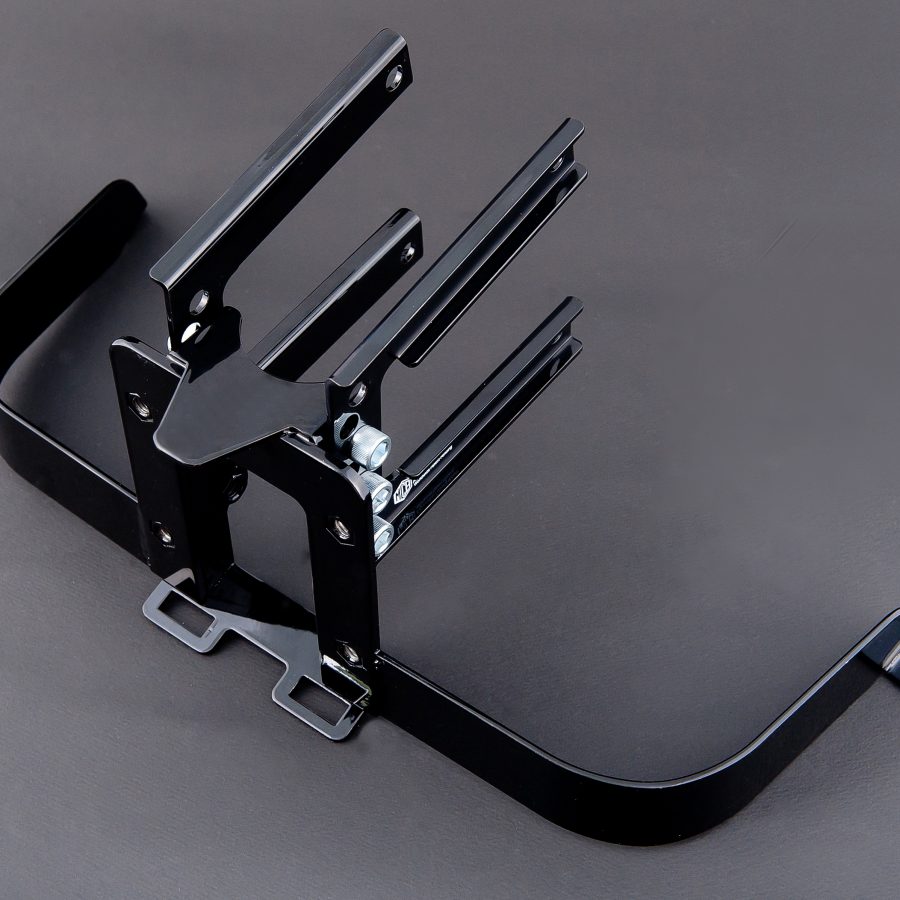 この製品を使用すると、ロードグライドをストック位置から最大3インチ、0.5インチ刻みで下げることができ、エンジンガードからブラケットを取り外すことができます。